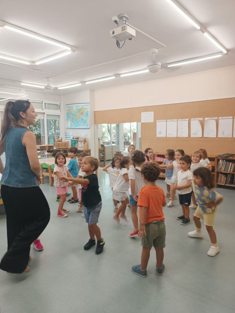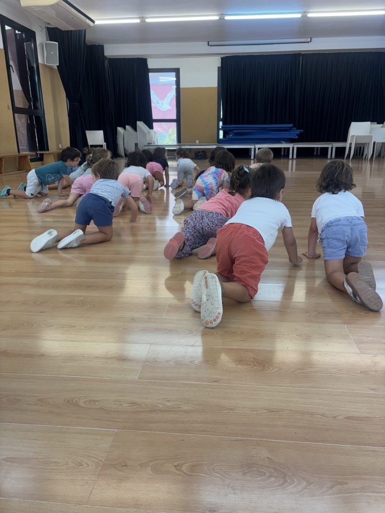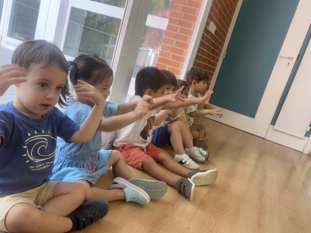 En las actividades de gran grupo disfrutamos de las diferentes clases, como en expresión corporal, donde jugamos con pañuelos y pompones para desarrollar la psicomotricidad gruesa y el movimiento libre con mucha ilusión y alegría.